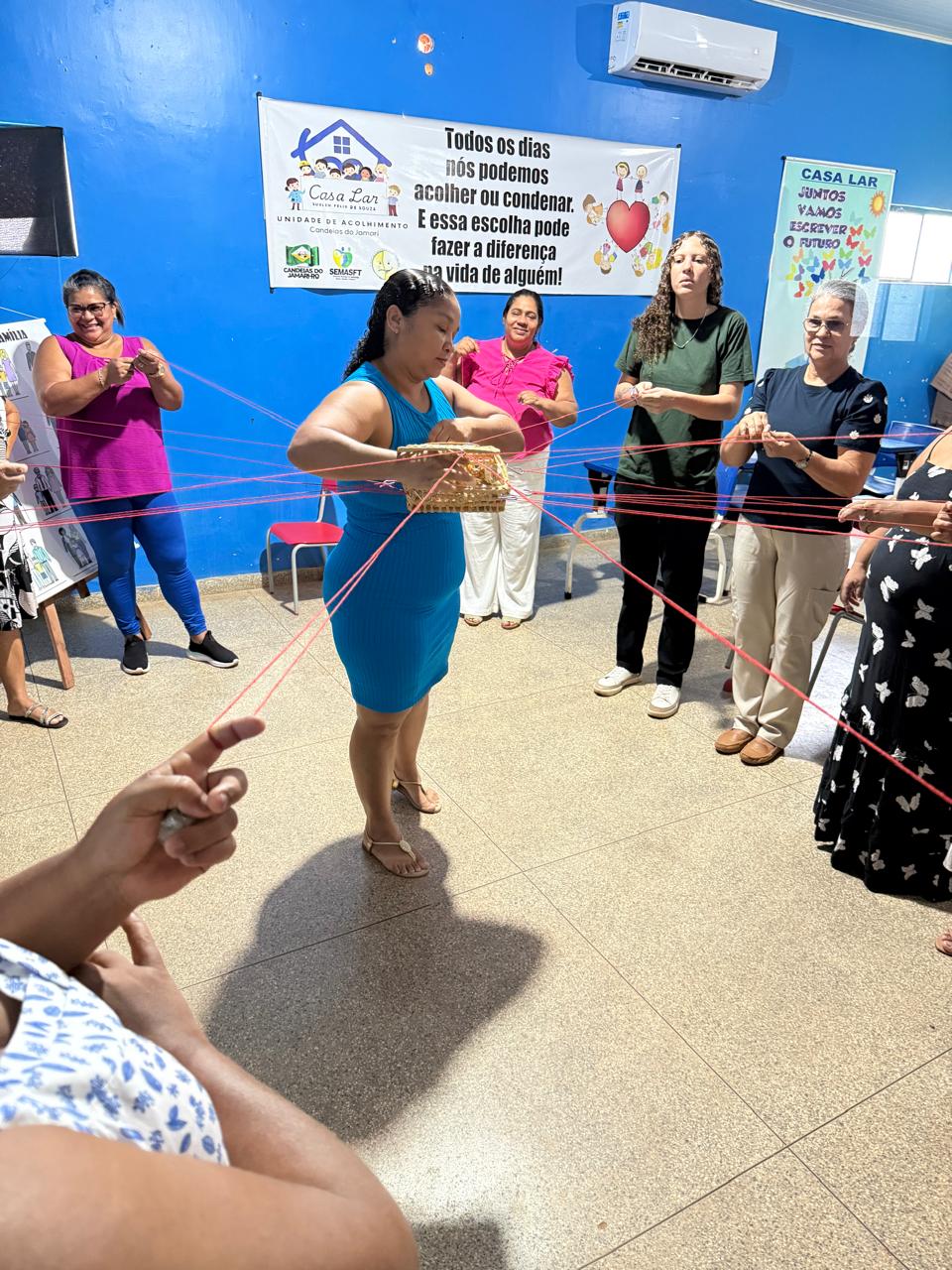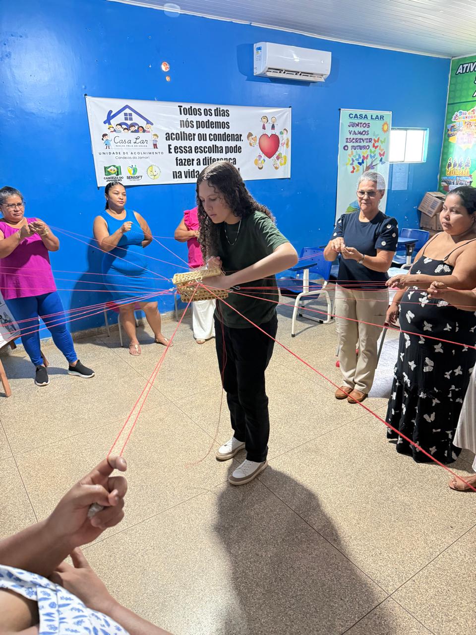 O encontro foi realizado na Rua 21 de Abril, nº 265, Bairro União – Candeias do Jamari (RO), reunindo profissionais da rede de proteção, cuidadores e membros da equipe do Casa Lar.