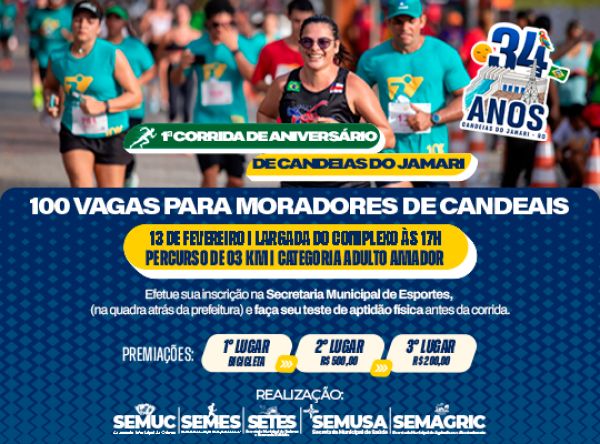 Inscrições abertas para a 1ª Corrida de Aniversário de Candeias do Jamari